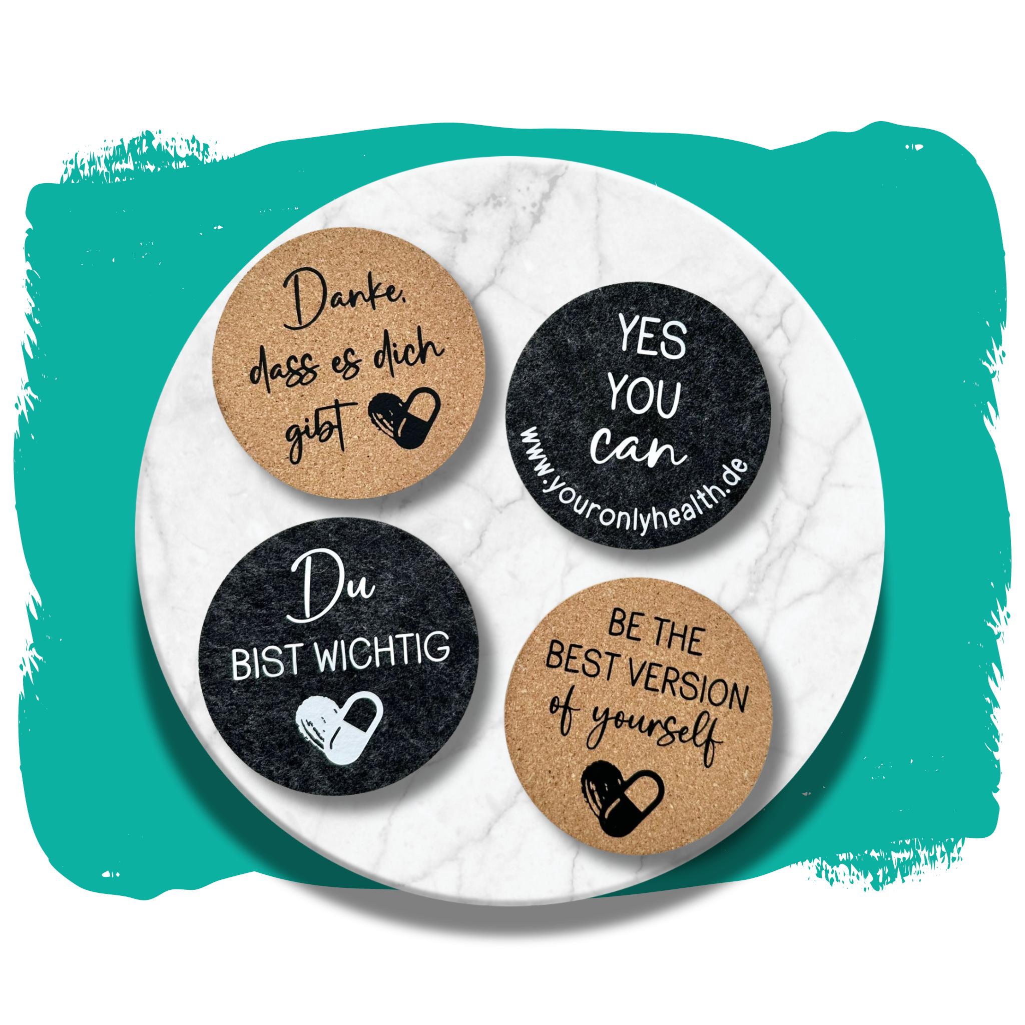 Zu jeder Bestellung gibt es einen handgemachten Untersetzer aus Kork oder Filz gratis dazu!